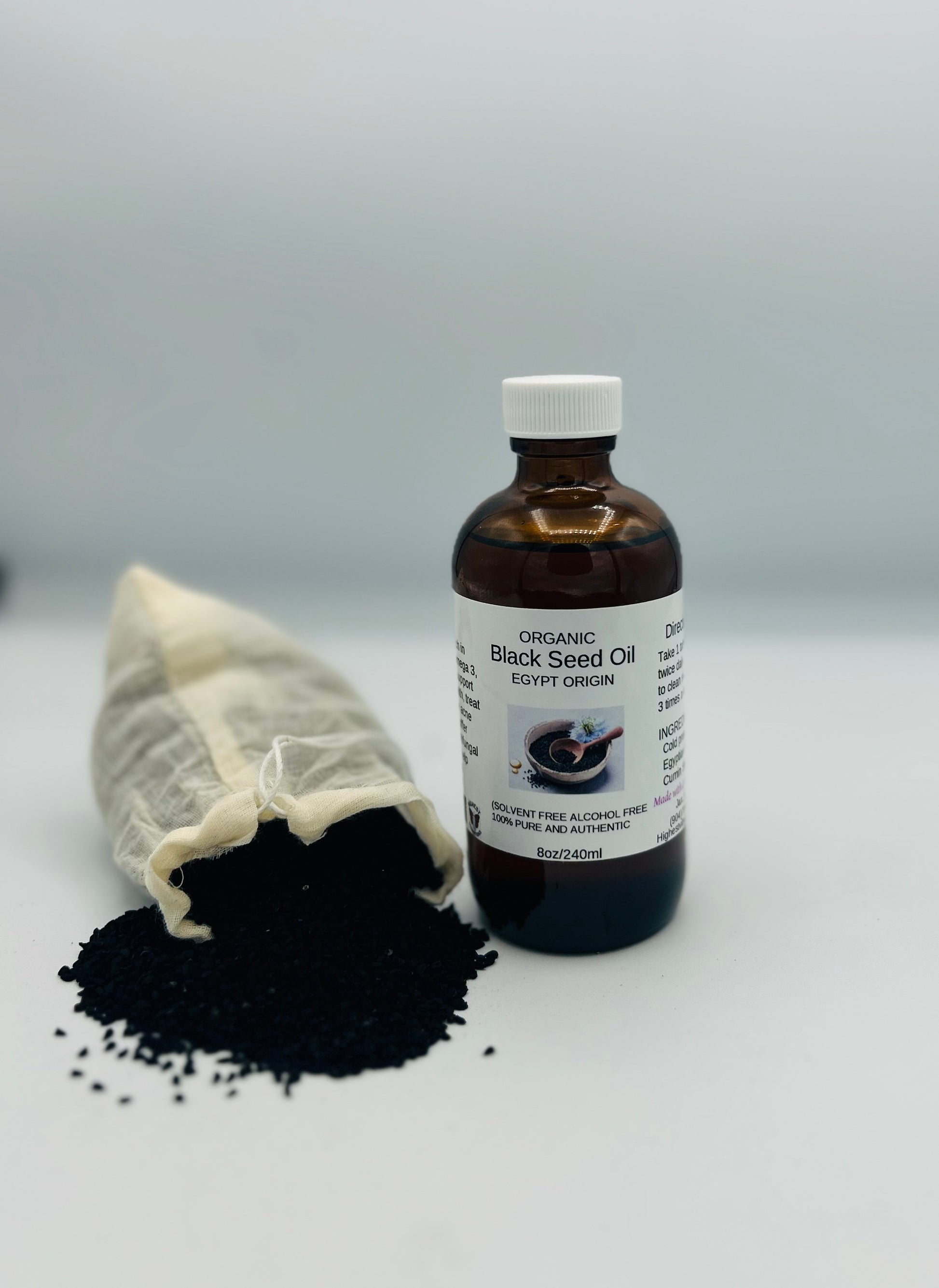 Black Seed Oil, or Nigella Sativa, hails from Egypt and has been cherished for centuries due to its wide-ranging therapeutic benefits. Revered as “the seed of blessing,” this potent oil is packed with essential fatty acids, antioxidants, and vitamins that make it a powerful tool for improving brain health, supporting the heart, and addressing various skin conditions.